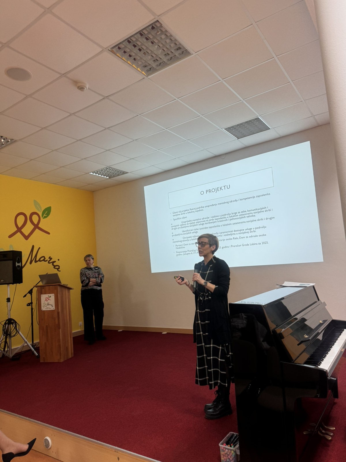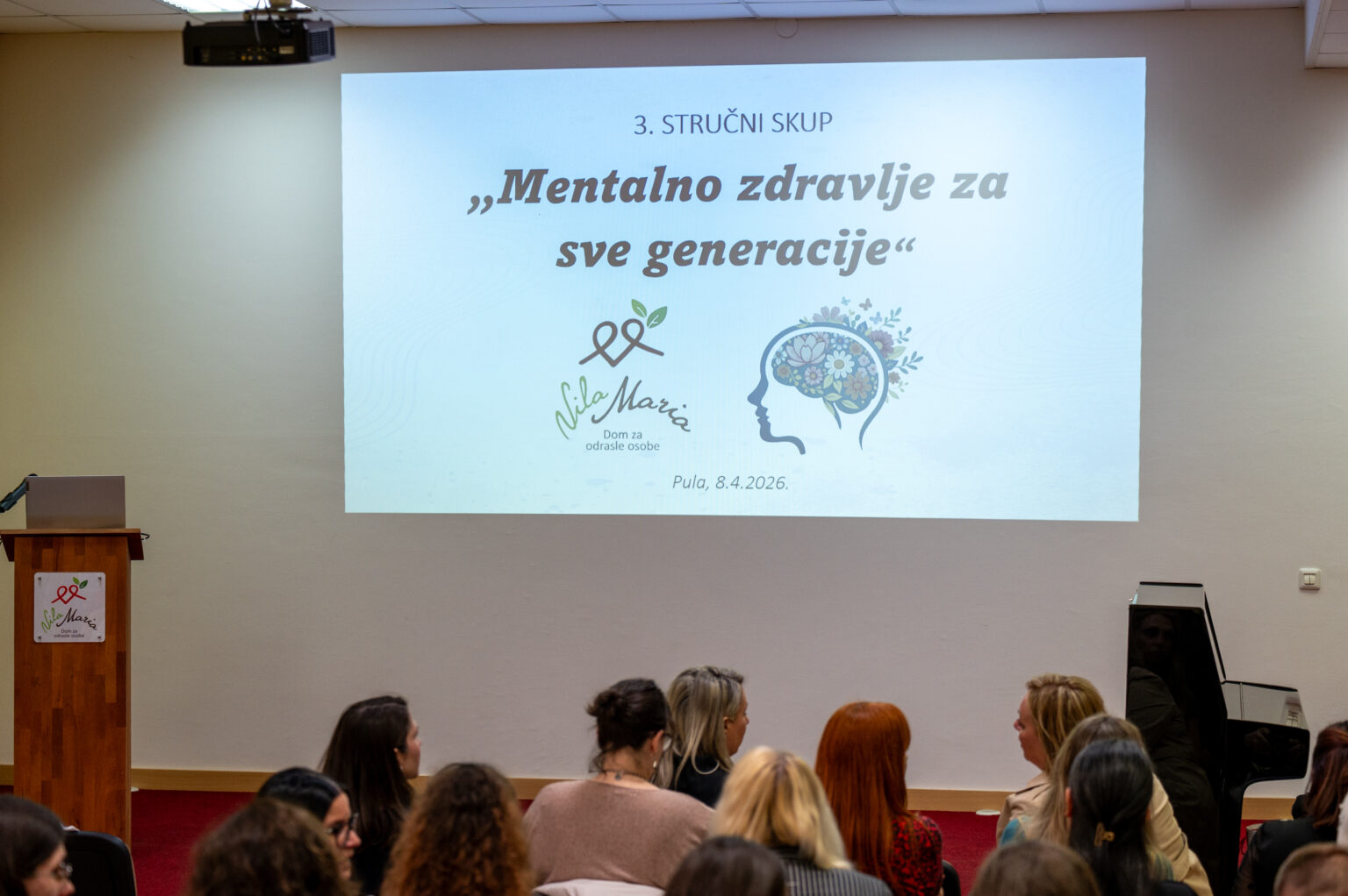 Dana  8. travnja 2026. u Puli u sklopu Stručnog skupa “Mentalno zdravlje za sve generacije” u organizaciji Doma za odrasle osobe Vila Maria, naše Sandra i Ana u ulozi izvoditeljice i voditeljice projekta su održale prezentaciju “Mentalno zdravlje zaposlenika u socijalnoj skrbi- prikaz iskustva s projekta” kolegama iz različitih sustava. Predavanje je prikazalo iskustva i spoznaje tijekom provođenja projekta POP- Pomagači za pomagače sufinanciranog od strane Istarske županije i Grada Labina iz proračuna za 2025.g, te implikacije za daljnje aktivnosti i važnost podrške ciljanoj skupini. Projekt je uključivao individualnu superviziju, ispitivanje potreba zaposlenika putem online upitnika, promociju mentalnog zdravlja u zajednici te provođenje grupnih psihosocijalno-edukativnih radionica za zaposlenike triju lokalnih ustanova koje su partneri udruzi: Dom za starije osobe Labin, Dom za odrasle osobe Nedešćina i Dom za starije osobe Raša. Glavni cilj projekta je bio razvoj podrške unapređenju mentalnog zdravlja i kompetencija zaposlenika socijalne skrbi u lokalnoj zajednici. Sandra i Ana su podijelile vrijedne informacije i dojmove o radu sa zaposlenicima domova socijalne skrbi, uz naglasak na potrebi nastavka takvih inicijativa, ali i iskazanoj potrebi za podrškom od strane zaposlenika. Zahvaljujemo organizatorima na divnom dočeku i organizaciji, ali i drugim predavačima na inspirativnim predavanjima!